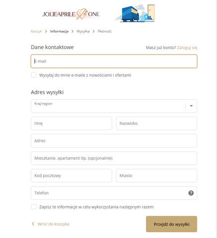 Krok 2: Przejdź do strony kasy i wypełnij informacje dotyczące odbioru.