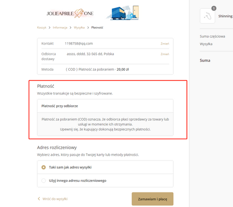 Krok 3: Wybierz metodę płatności za pobraniem i dokończ zamówienie.