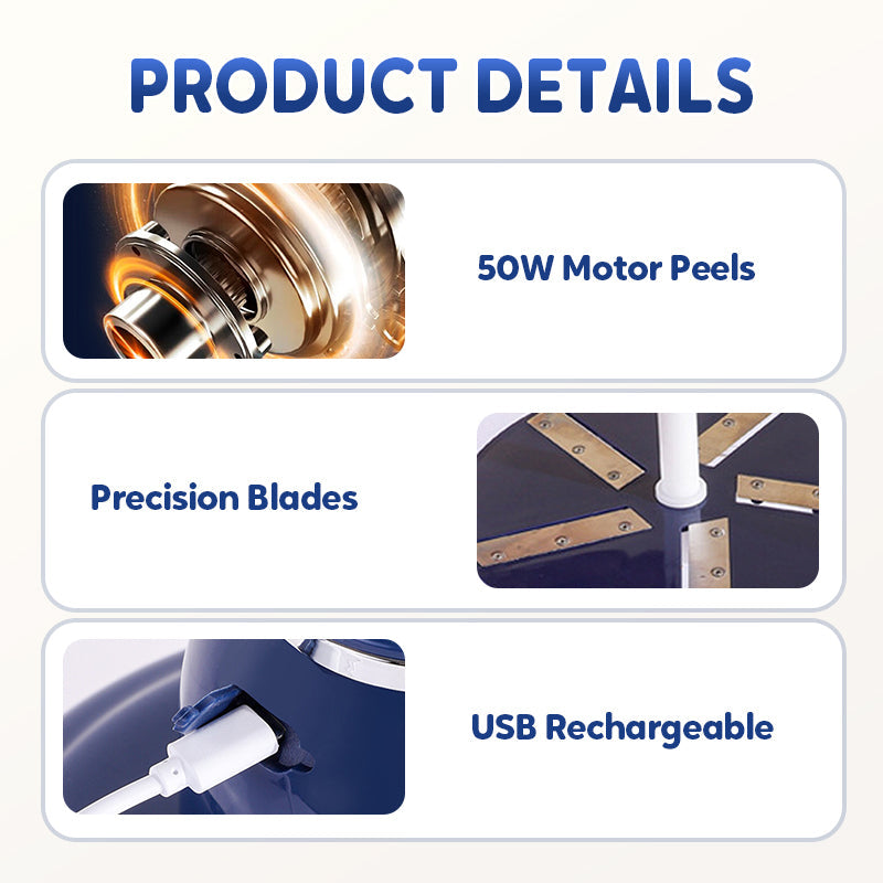 Inteligentne ostrza, zero marnotrawstwa- Pięć ultracienkich ostrzy ze stali nierdzewnej przesuwa się po skórce owoców, nie wcinając się w miąższ, dzięki czemu każda jabłko, brzoskwinia lub gruszka pozostaje soczysta i smaczna. Nawet delikatne winogrona można idealnie obrać, nie uszkadzając miąższu, pozostawiając czysty, gotowy do spożycia przysmak