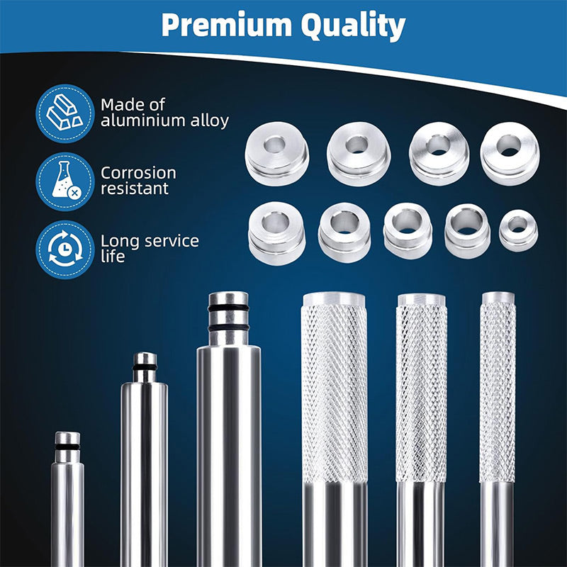 PRECYZYJNA KONSTRUKCJA UŁATWIAJĄCA NAPRAWY: Ten zestaw narzędzi, zaprojektowany z myślą o entuzjastach motoryzacji i profesjonalistach, zapewnia płynny montaż i demontaż łożysk. Precyzyjnie wykonana konstrukcja ze stopu aluminium gwarantuje trwałość i niezawodność, dzięki czemu nawet najtrudniejsze zadania stają się wykonalne.