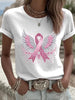Damska wstążka z rakiem piersi Skrzydła z cekinami z nadrukiem Casual T-Shirt