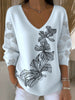 Damski jasnoniebieski sweter z dekoltem w kwiaty