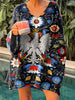 Damski sweter z dekoltem w serek w stylu vintage z etnicznym kwiatowym nadrukiem
