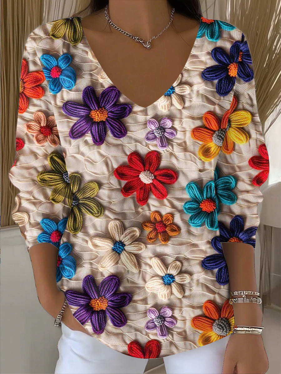 Damski top w stylu vintage z motywem patchworku z dekoltem w szpic