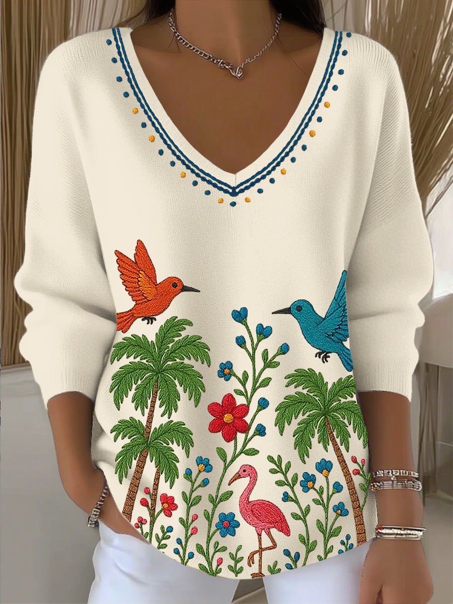 Damski Vintage Koliber Kwiatowy Top z dekoltem w szpic