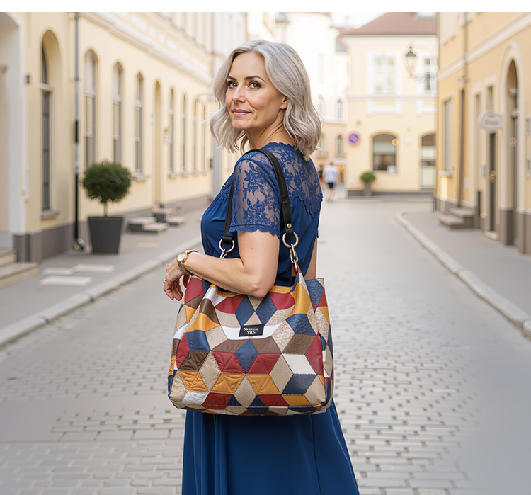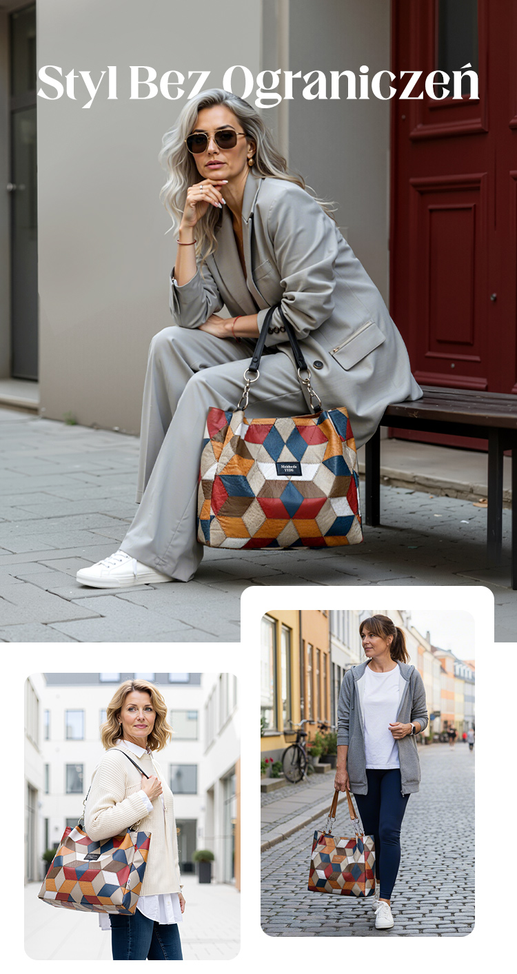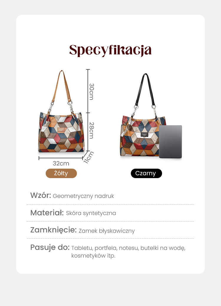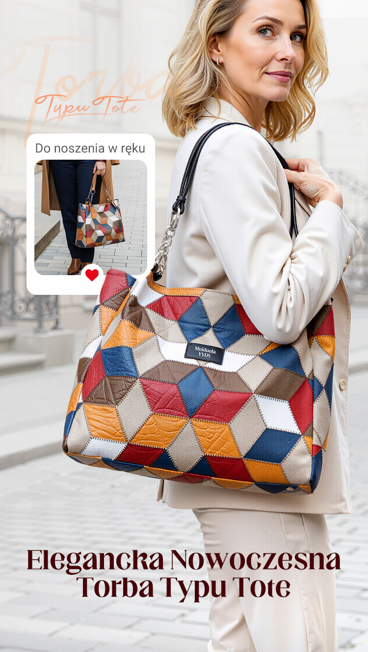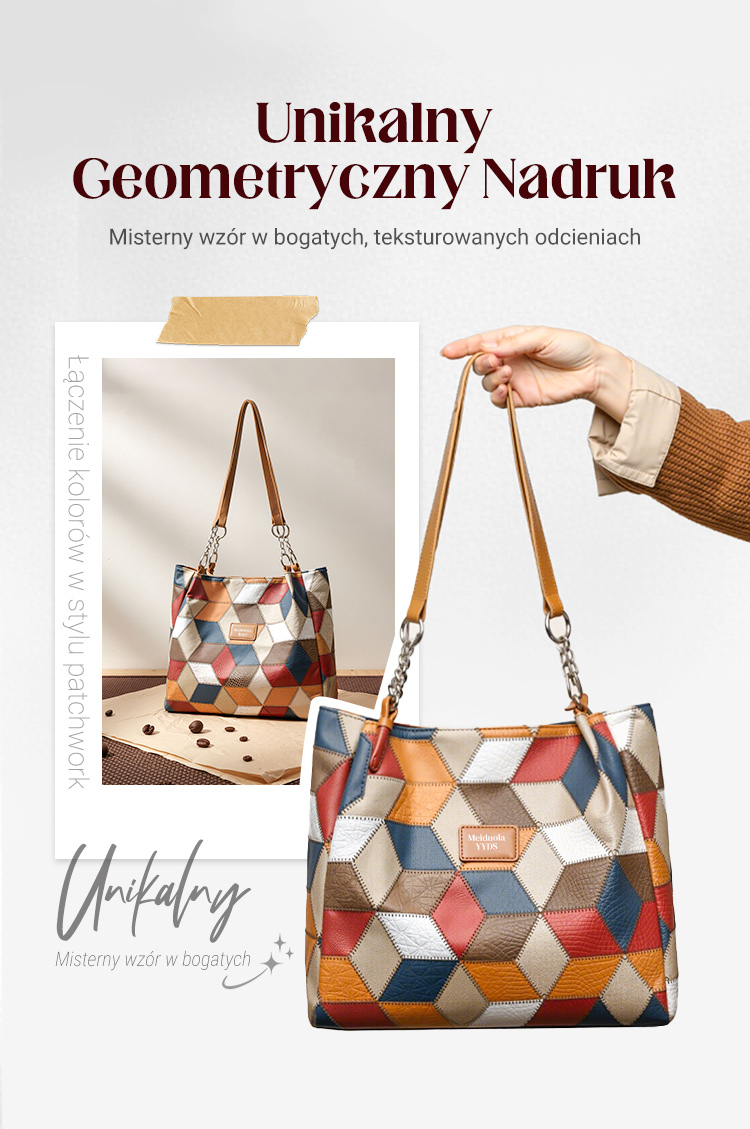 2026 Modna torba typu tote z geometrycznym wzorem i dużą pojemnością