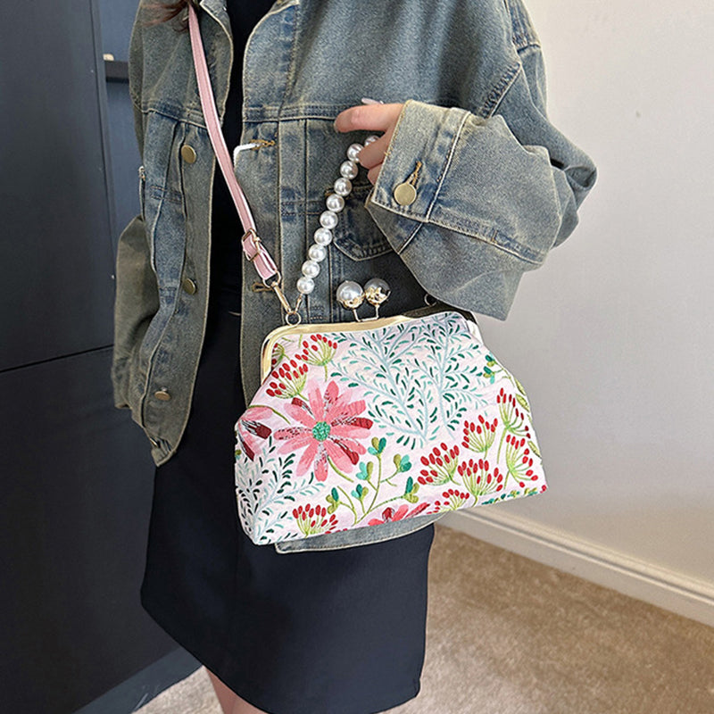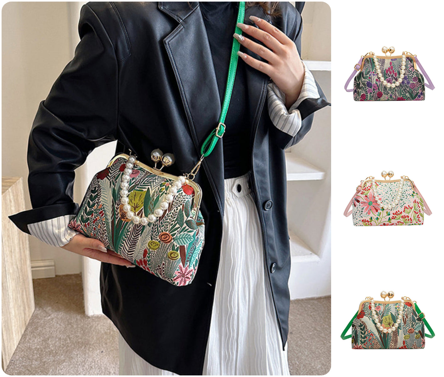 Pakiet zawiera: 1 × Damska torebka z haftem w kwiaty w stylu vintage
