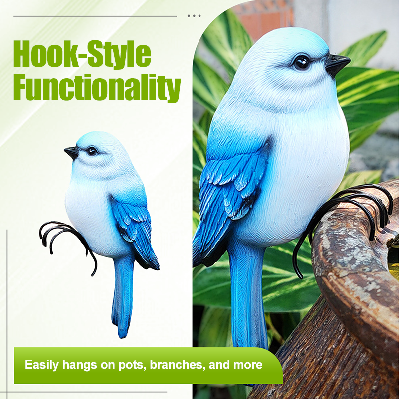 KONSTRUKCJA W KSZTAŁCIE HACZYKA: Pazury ptaka mają kształt haczyków, dzięki czemu można go łatwo przymocować do doniczek, gałęzi lub innych elementów wyposażenia ogrodu. Ta wszechstronna funkcja zapewnia bezpieczne umieszczenie, jednocześnie poprawiając estetykę ogrodu lub wystroju wnętrza.