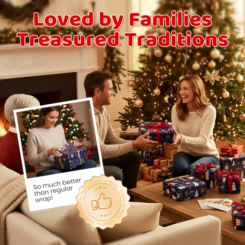 ŻYWE I ODPORNE NA BLAKNIĘCIE NADRUKI – Bogate, głębokie niebieskie tło i kolorowe grafiki są drukowane wysokiej jakości tuszem, dzięki czemu wzór pozostaje jasny i nie blaknie, a prezenty pod choinką wyglądają pięknie.