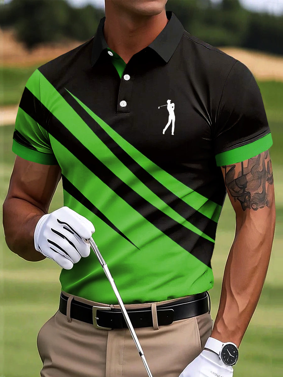 Męski golf abstrakcyjne nieregularne linie artystyczny nadruk na co dzień Biznesowa koszulka polo