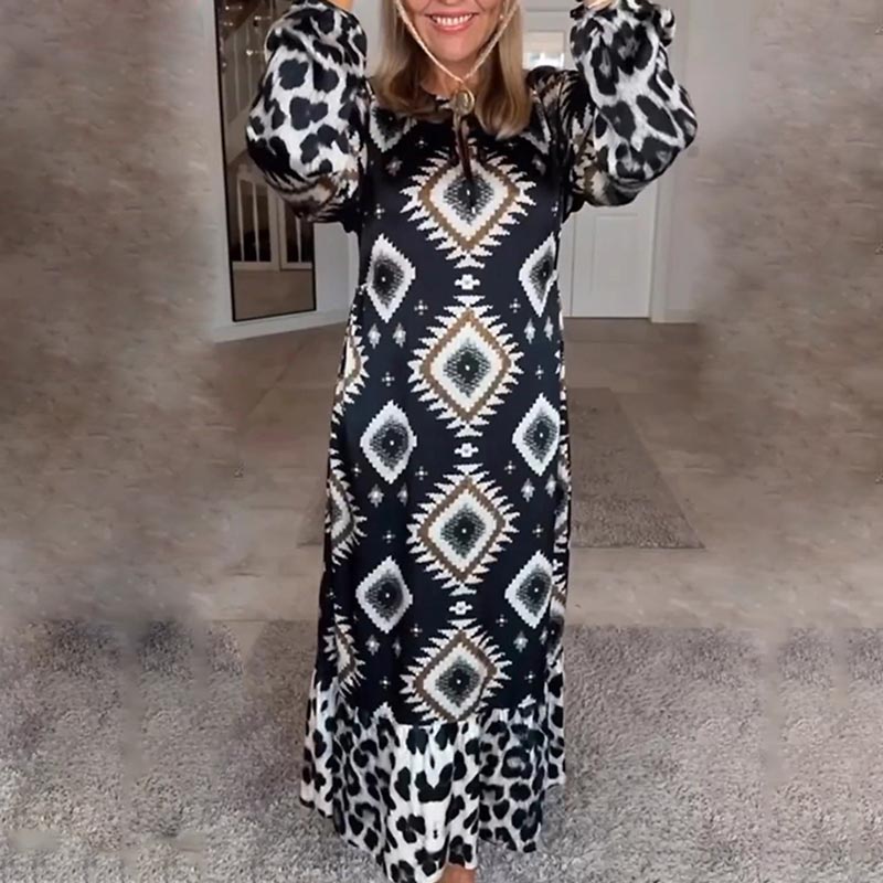 Pakiet zawiera: 1 * Damska sukienka z długim rękawem w stylu bohemy.