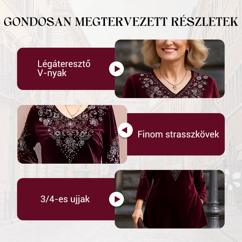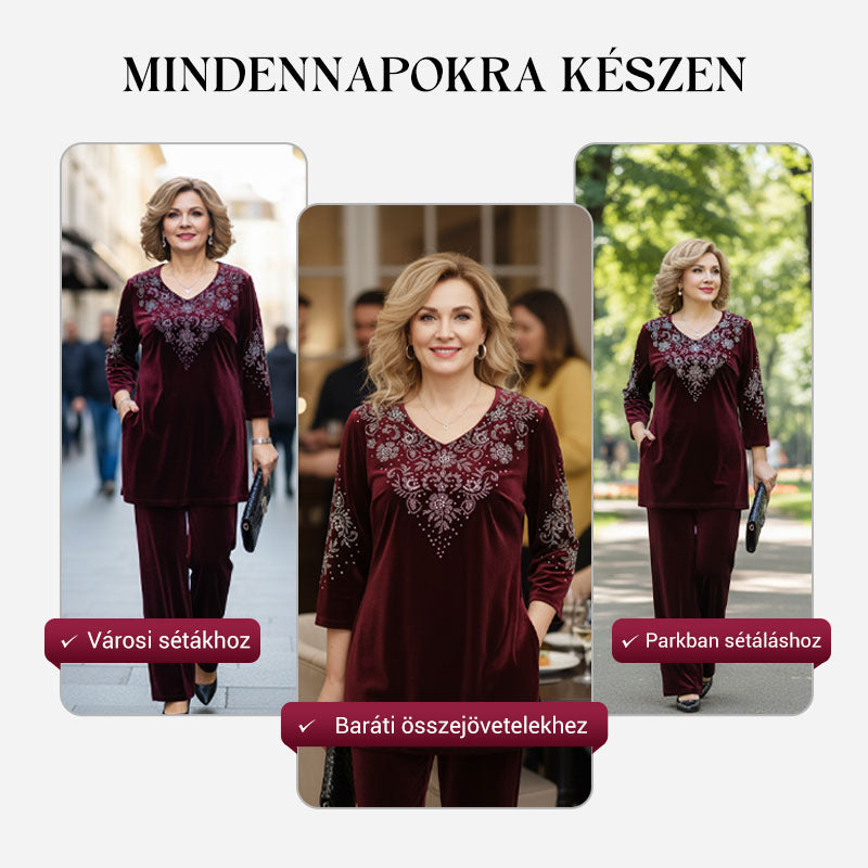 2026 Zestaw damski z aksamitną bluzką z kryształkami i spodniami