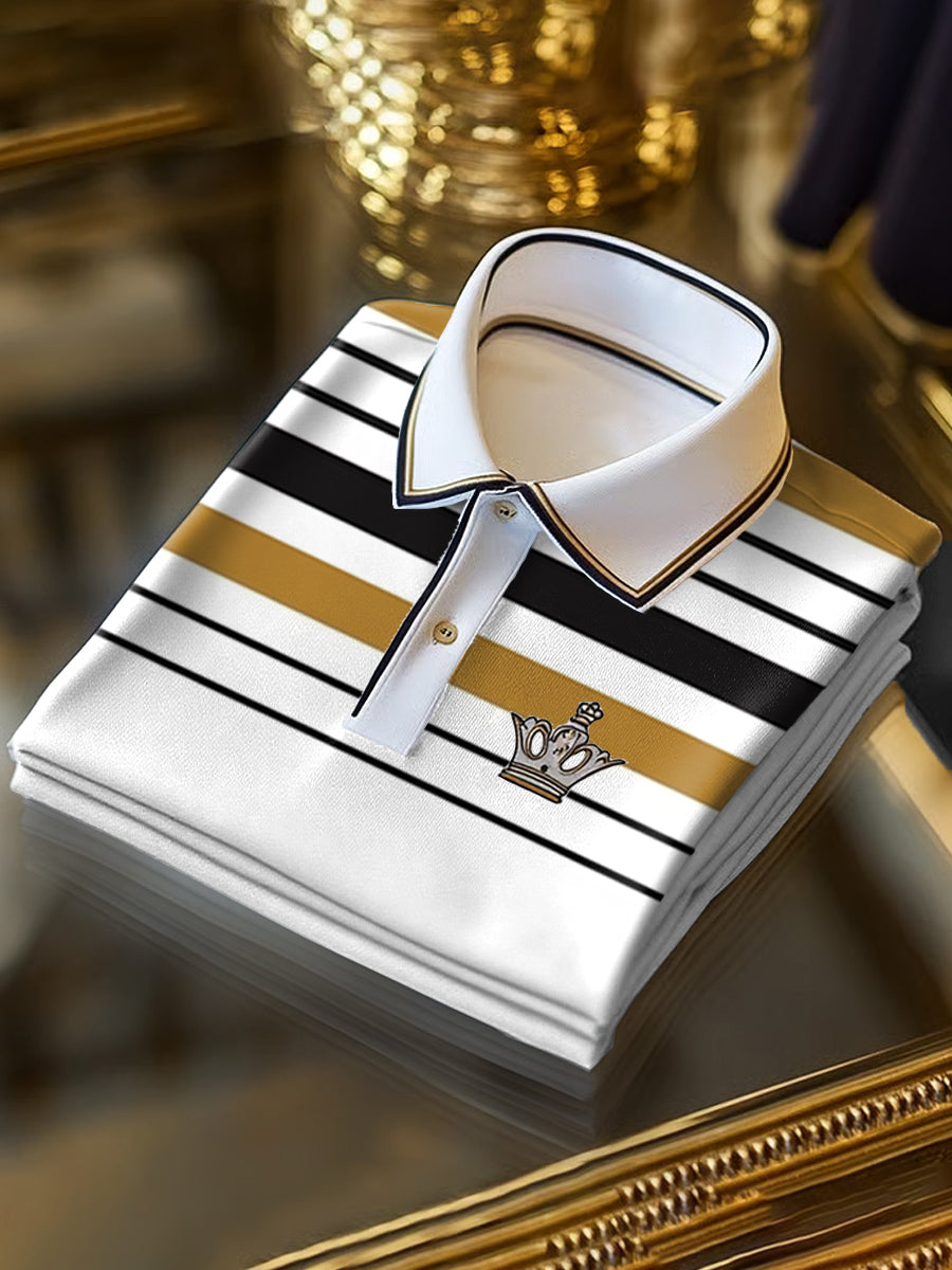 Klasyczna koszulka polo z krótkim rękawem w paski z nadrukiem artystycznym