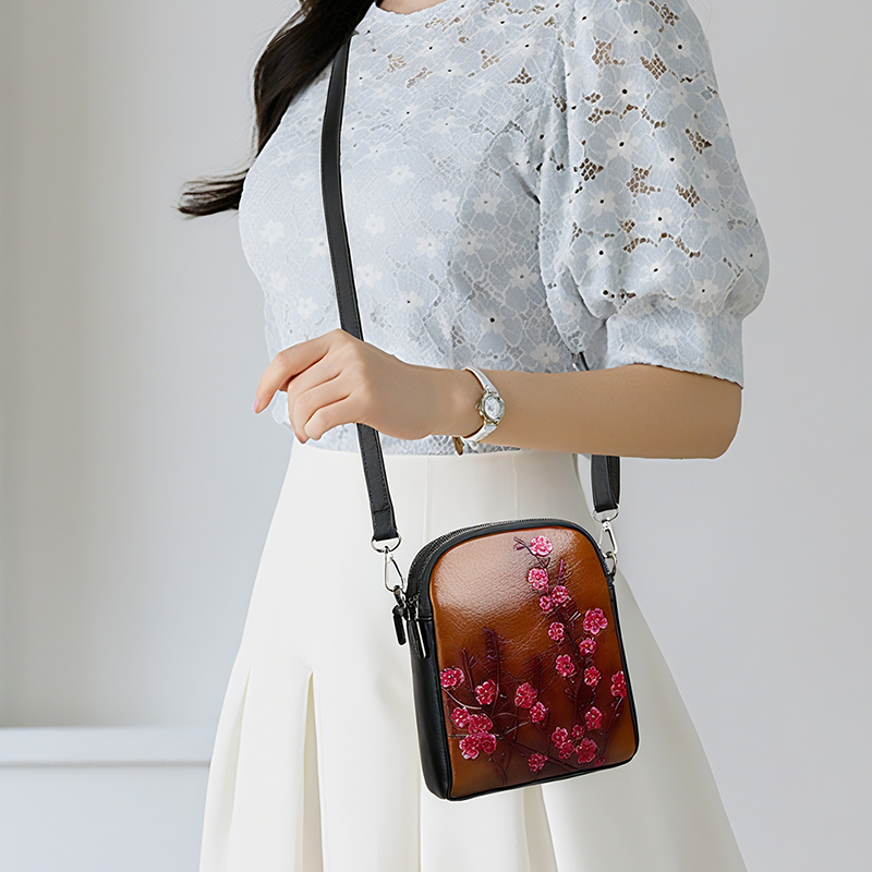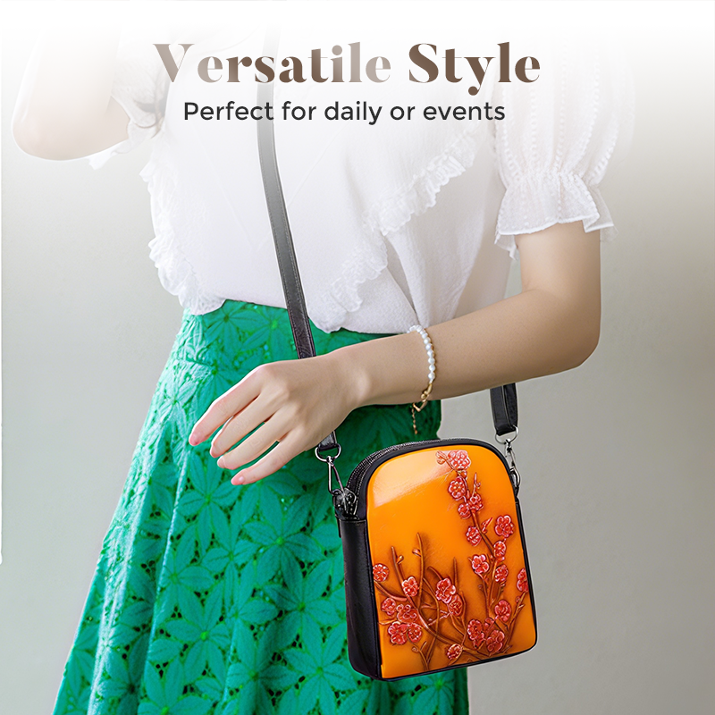 WYRAŹ ELEGANCJĘ RZEMIEŚLNICZĄ – Podnieś poziom swoich codziennych stylizacji. Ta torba na ramię w stylu etnicznym, ozdobiona wytłoczonym motywem kwiatu śliwy i charakteryzująca się wyraźną naturalną fakturą, łączy w sobie kulturowy urok z nowoczesną modą. Jej ponadczasowy motyw kwiatowy dodaje subtelnego, ale wyrafinowanego charakteru, dzięki czemu idealnie nadaje się zarówno do codziennego noszenia, jak i na specjalne okazje.