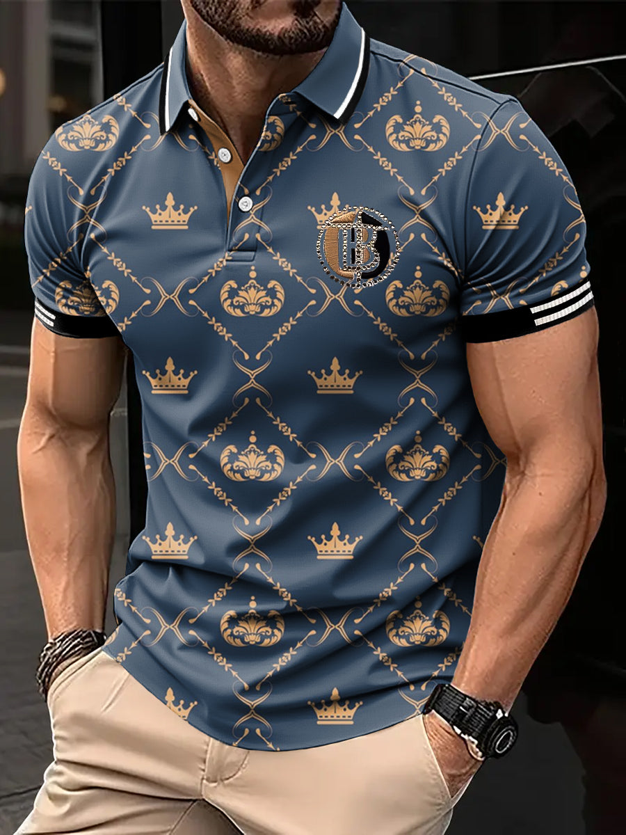 Męska koszulka polo biznesowa z nadrukiem geometrycznym w stylu retro
