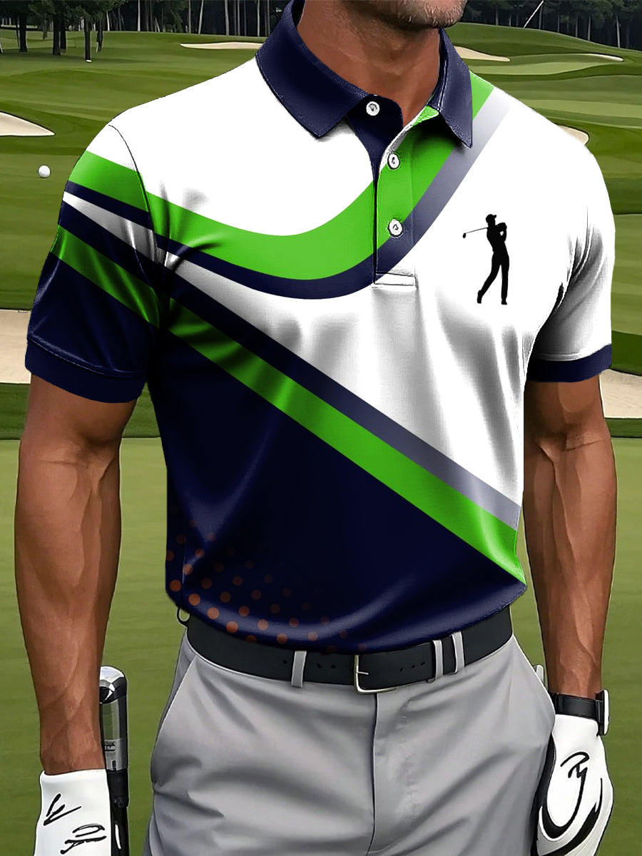 Męska koszulka polo w stylu retro nieregularna kolorowa koszulka z nadrukiem artystycznym w stylu retro