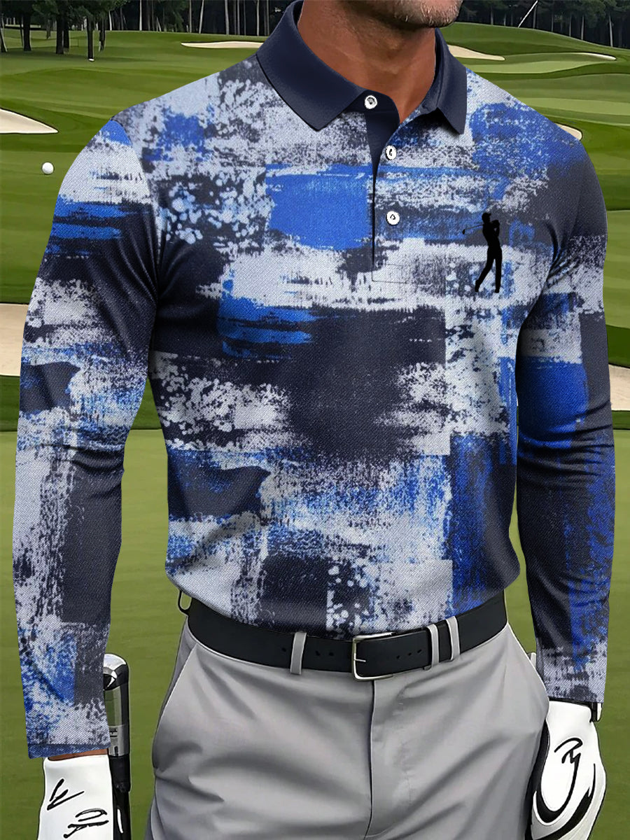 Męska koszulka polo z długim rękawem w stylu vintage w stylu vintage, kolorowa, artystyczna koszulka polo z długim rękawem
