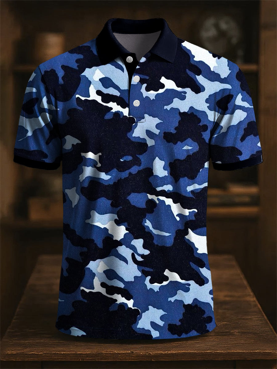 Męska koszulka polo z nadrukiem abstrakcyjnego kamuflażu w stylu vintage