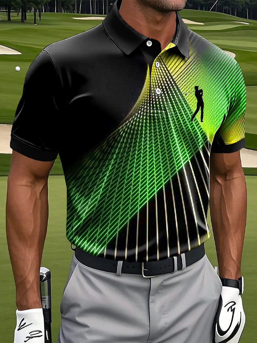 Męska koszulka polo z nadrukiem artystycznym w stylu retro z gradientu w paski