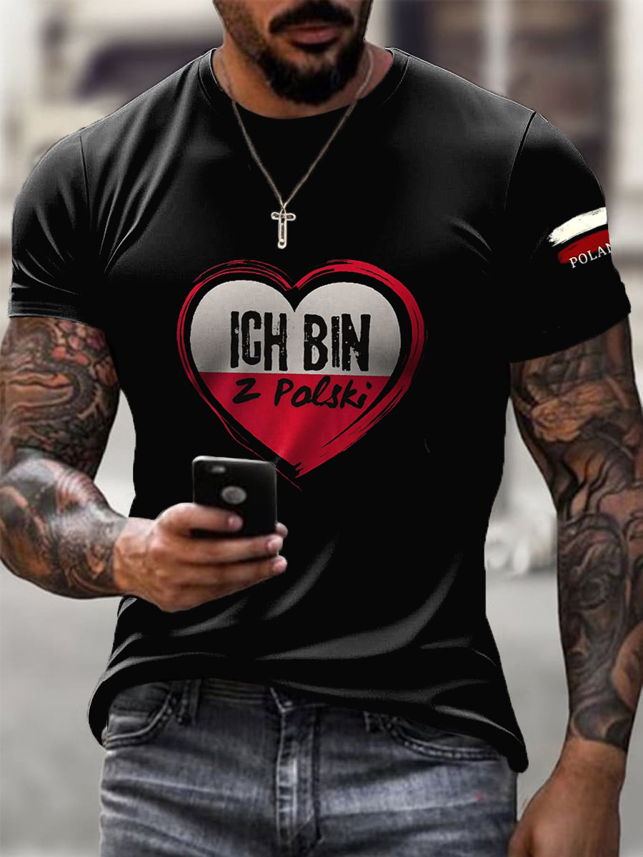 Męska polska flaga miłosna wzór czarna casualowa koszulka