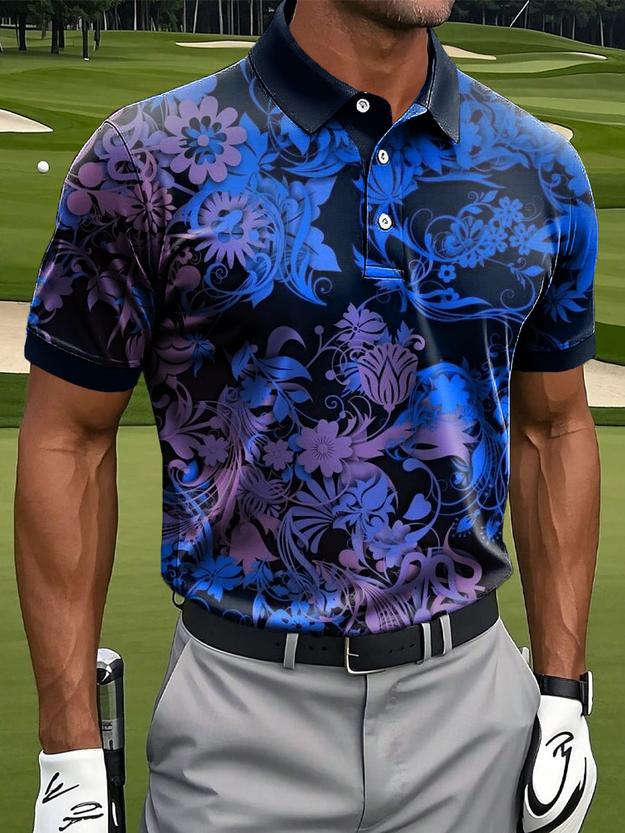 Męska retro hawajska abstrakcyjna kwiecista sztuka nadruk casualowa biznesowa koszulka polo