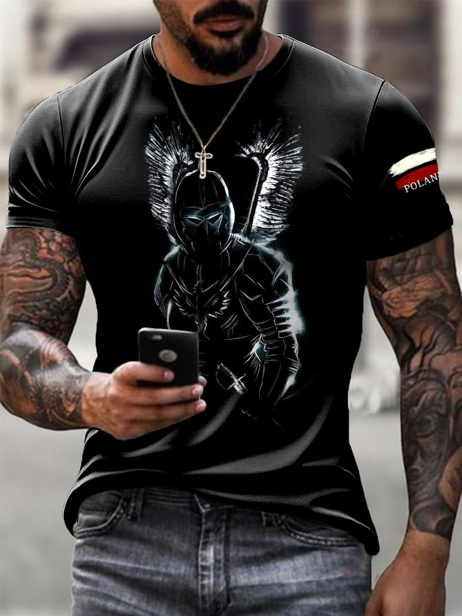 Męski Vintage Polski Hussar Dark Art Print Casual T-Shirt