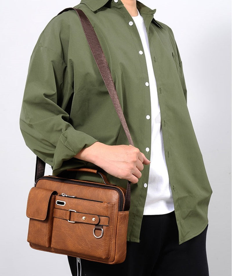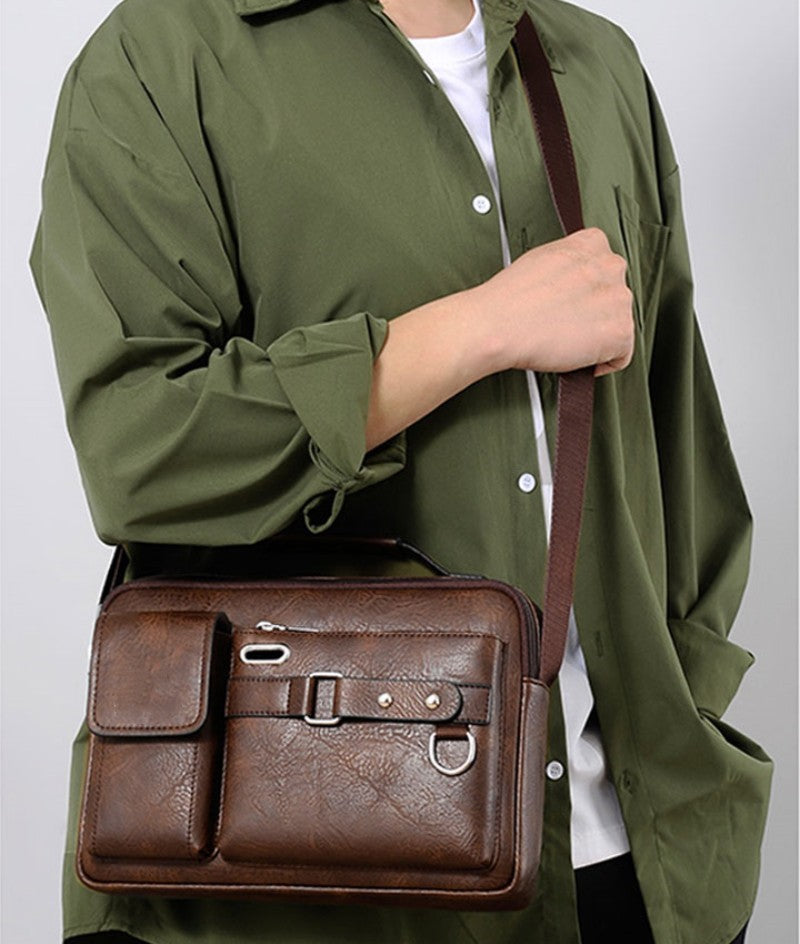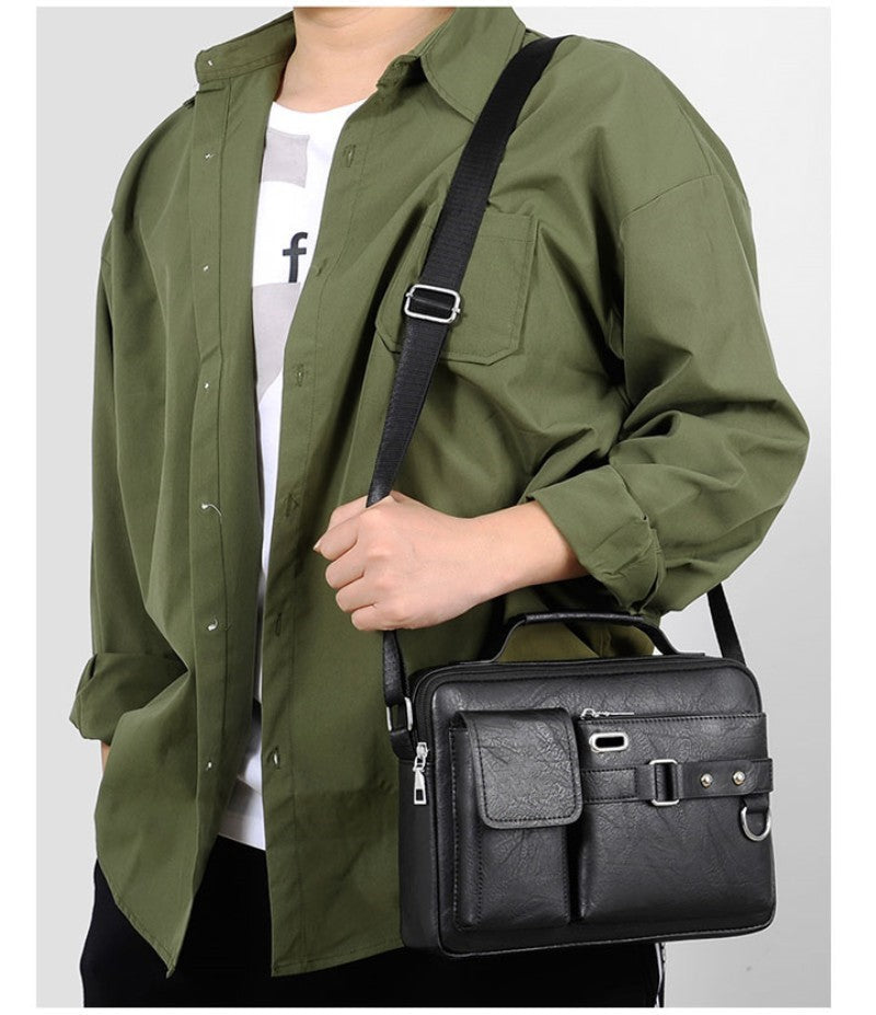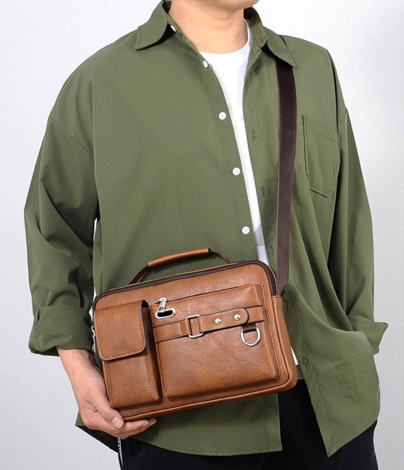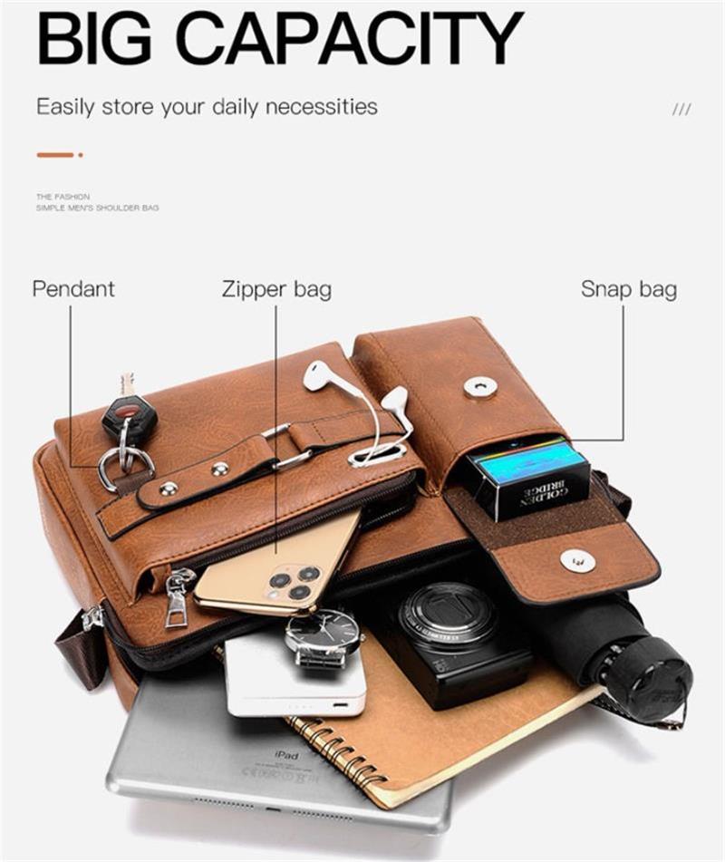 Struktura i pojemność: Wnętrze teczki zawiera wiele dobrze zaprojektowanych przegródek, w tym oddzielną wewnętrzną przegrodę na iPada lub aktówkę, 1 przednią przegrodę z kieszenią na guzik oraz 2 przednie i tylne kieszenie na suwak na paszport, bilet, telefon komórkowy, dowód osobisty, długopis, klucze, portfel itp. Wiele kieszeni pozwala uporządkować rzeczy i przechowywać niezbędne przedmioty codziennego użytku.