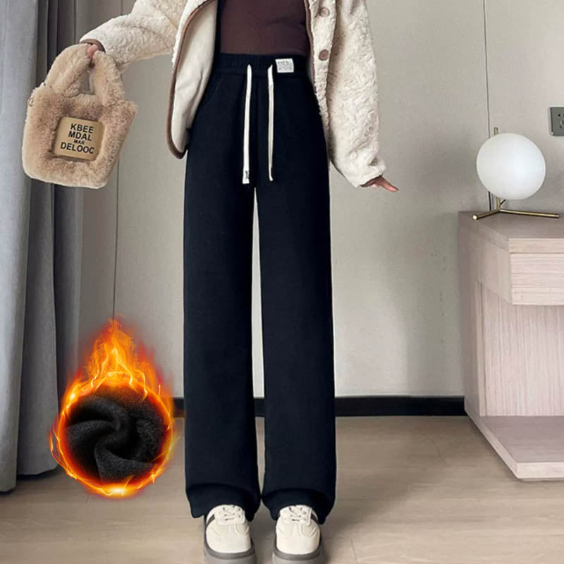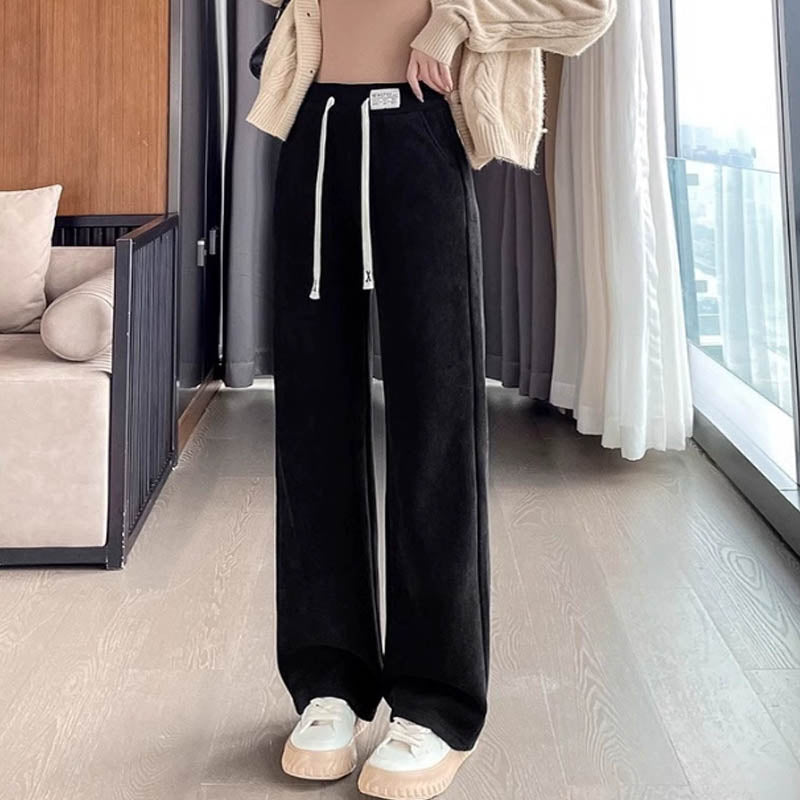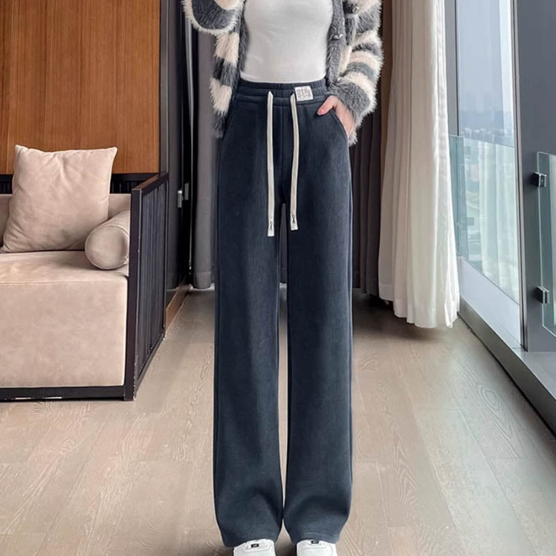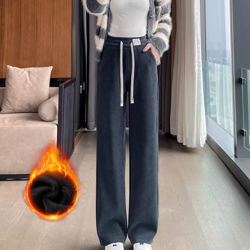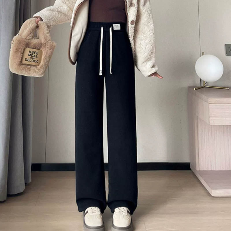 Opakowanie zawiera: 1 * Miękkie ocieplane spodnie z prostymi nogawkami i sznurkiem do ściągania