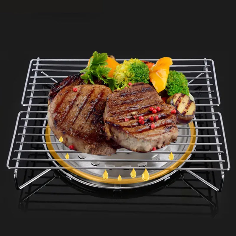 SZYBKI MONTAŻ I ŁATWA OBSŁUGA: Ten stojak do grilla nie wymaga skomplikowanego montażu, dzięki czemu jest szybki i łatwy w użyciu. Wystarczy umieścić go na kuchence, wyregulować ruszt i rozpocząć grillowanie w ciągu kilku minut.