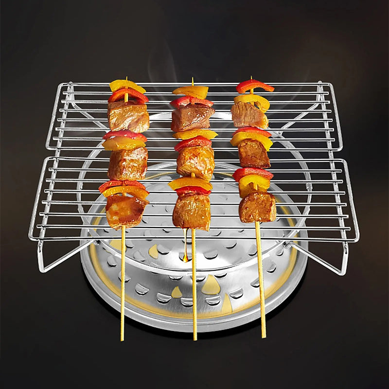 PRZENOŚNY I LEKKI DLA ŁATWEGO TRANSPORTU: Ten stojak do grillowania jest kompaktowy i łatwy do przenoszenia. Można go zabrać ze sobą wszędzie - idealnie nadaje się do biwakowania, grillowania lub grillowania na podwórku.