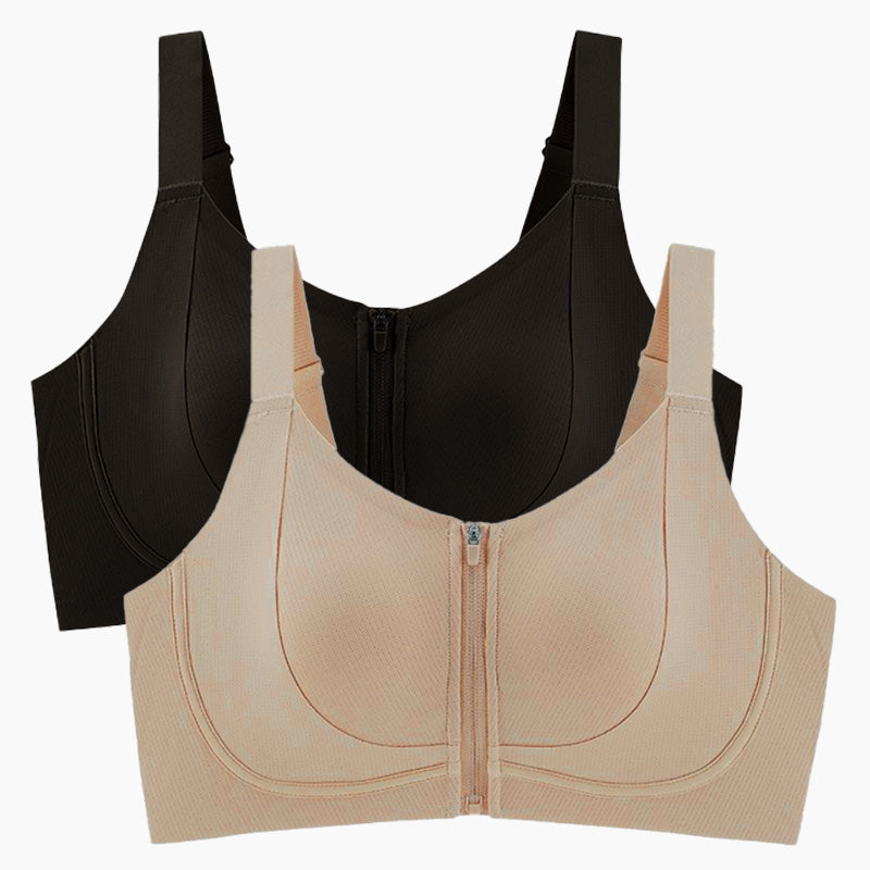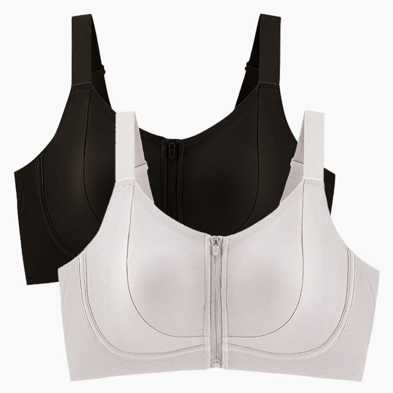 Zestaw zawiera: 2 sztuki* biustonosza damskiego z przednim zamkiem błyskawicznym zapobiegającym opadaniu biustu