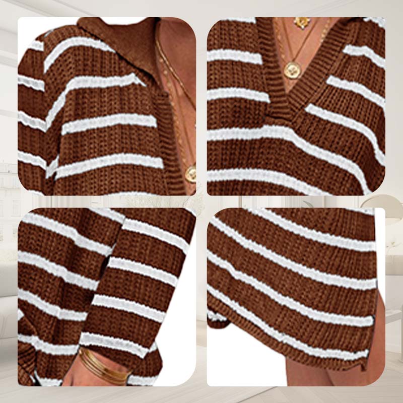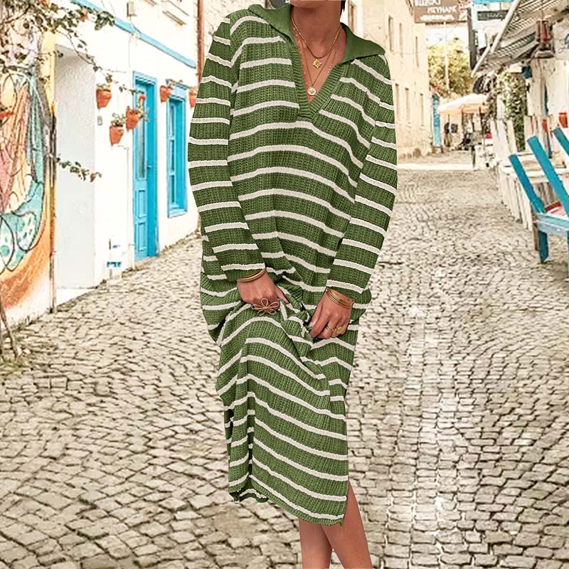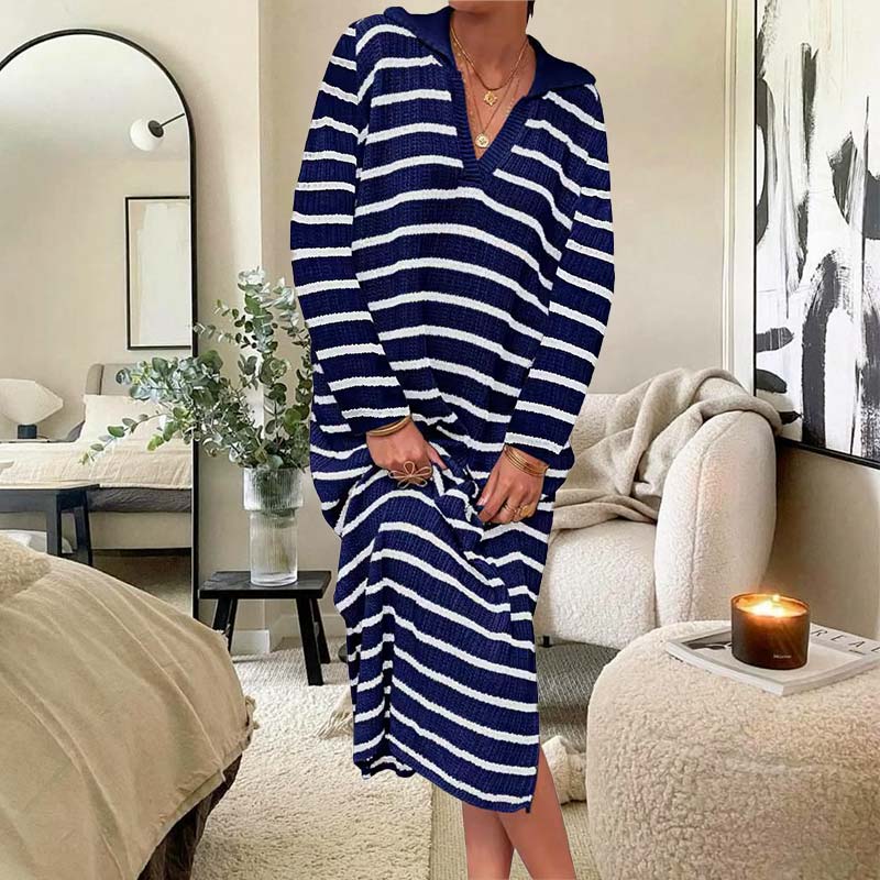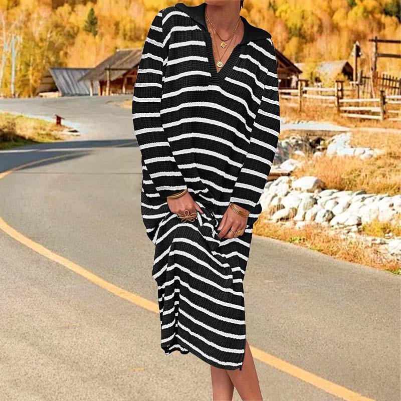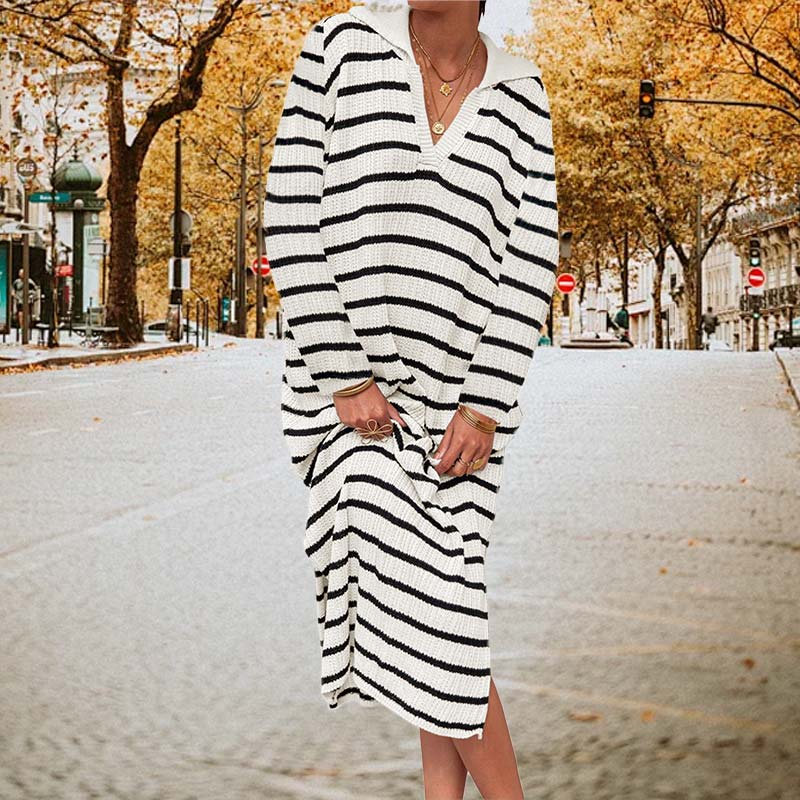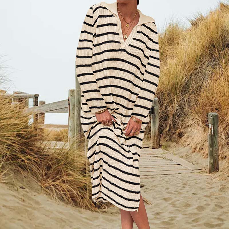 KLASYCZNY WZÓR W PASKI: ponadczasowy wzór w paski, który podkreśla styl w nowoczesnym wydaniu, dzięki czemu nadaje się na różne okazje, od swobodnych wyjść po półformalne imprezy.