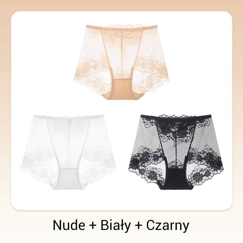 Damskie ręcznie robione bokserki z koronką o wysokim stanie