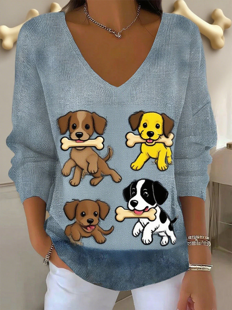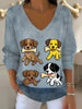 Damski retro zwierzęcy nadruk casualowy top z długim rękawem