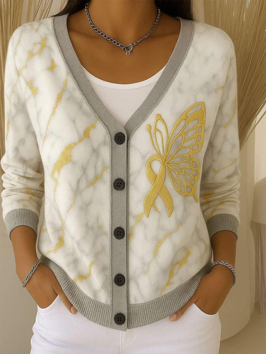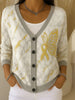 Damski kardigan z nadrukiem w kwiaty w stylu vintage