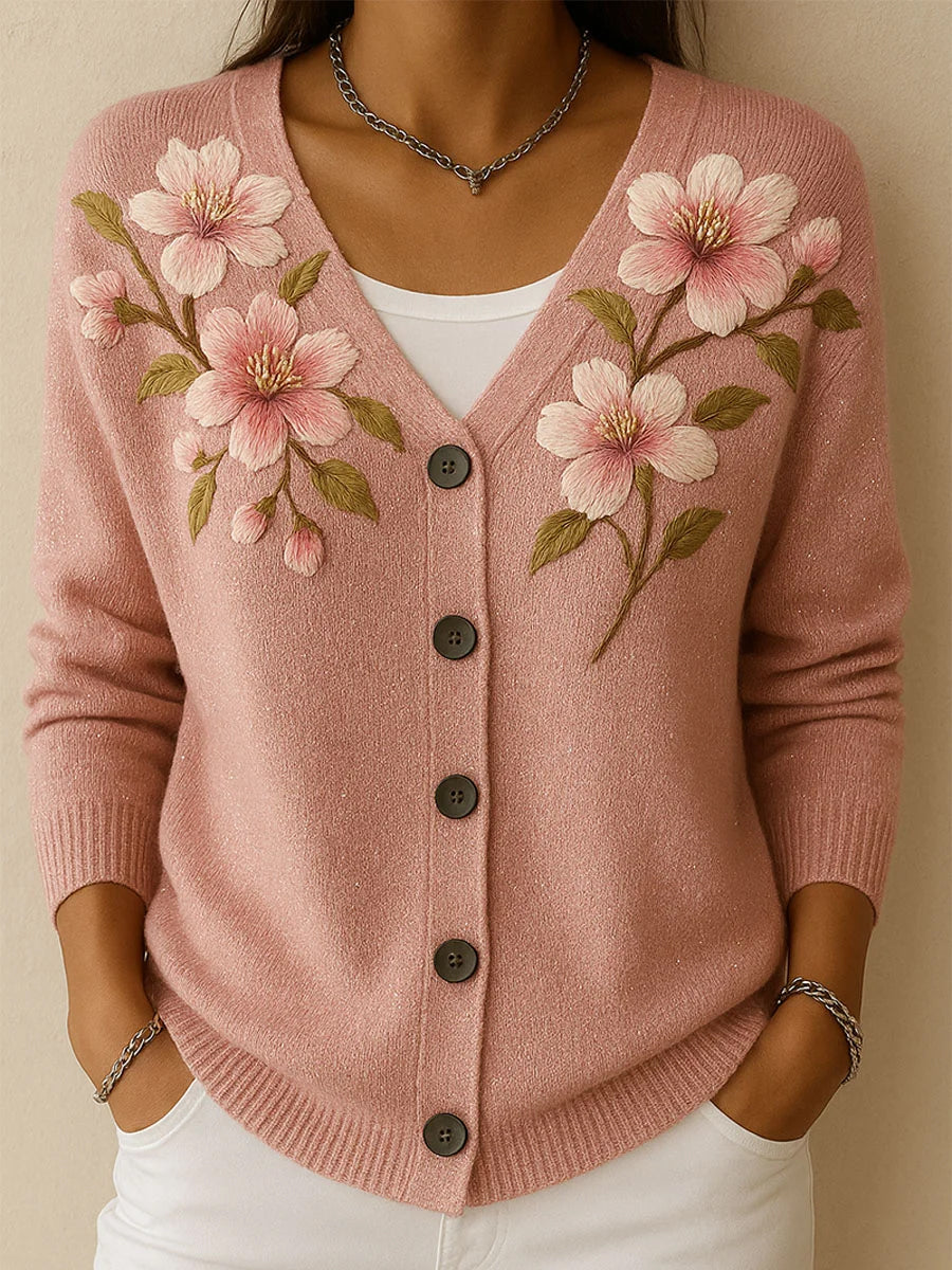 Damski kardigan z nadrukiem w kwiaty w stylu vintage