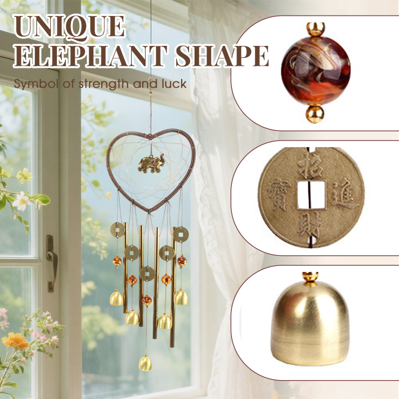 SŁOŃ JAKO SYMBOL SZCZĘŚCIA: Ten dzwonek wiatrowy, ozdobiony unikalnym wzorem słonia w kształcie serca, symbolizuje siłę, ochronę i szczęście. Idealny jako talizman, wnosi pozytywną energię, jednocześnie podkreślając piękno Twojego domu lub ogrodu.
