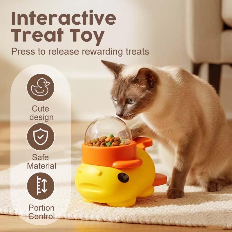 INTERAKTYWNY OBROTOWY DOZOWNIK – Twoje zwierzę może naciskać zabawkę, aby obrócić wewnętrzną płytkę i uwolnić smaczne nagrody. Ta zabawna czynność stymuluje umysł zwierzęcia, zmniejszając nudę i zachęcając do aktywnej, samodzielnej zabawy przez cały dzień.
