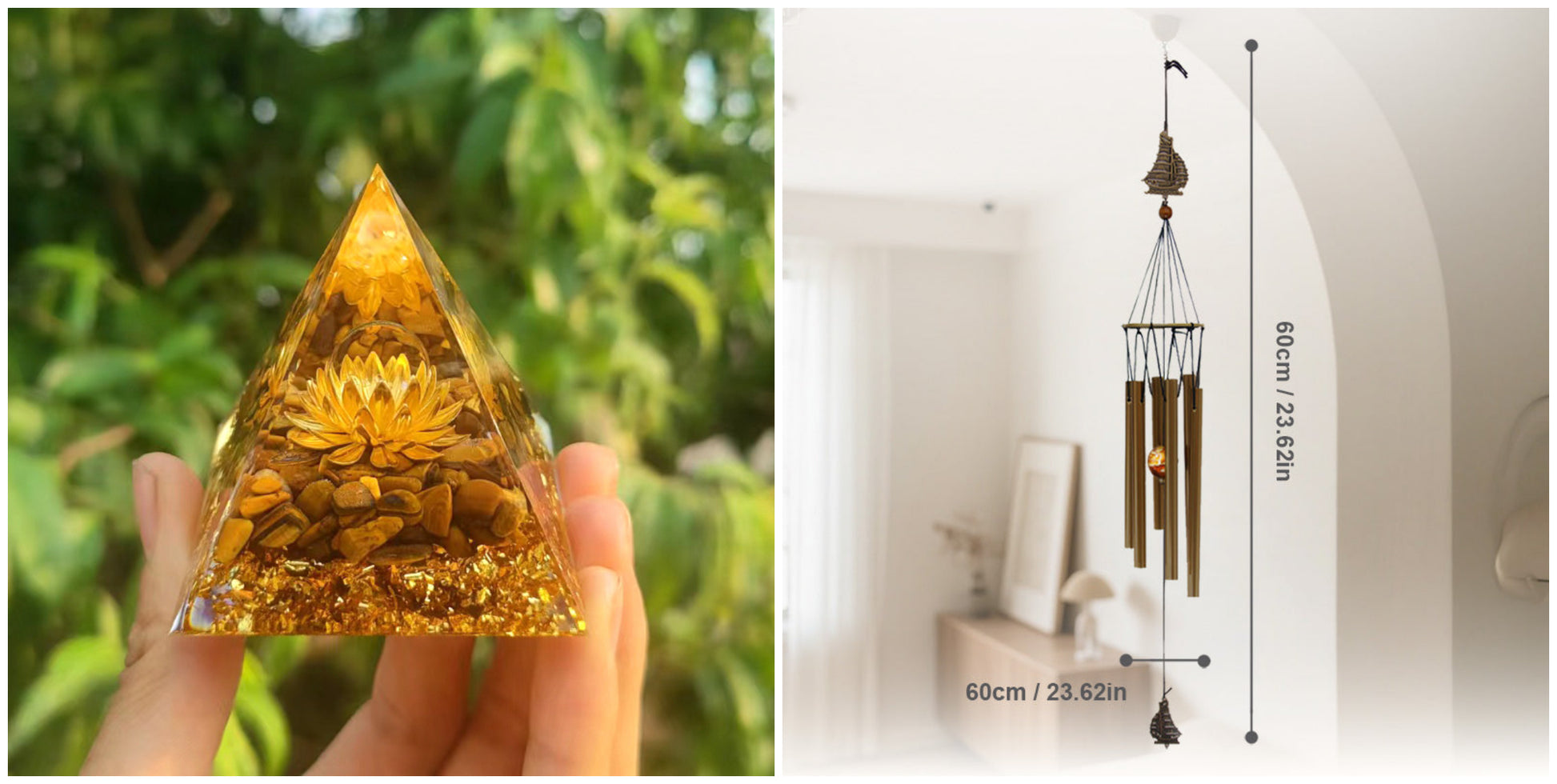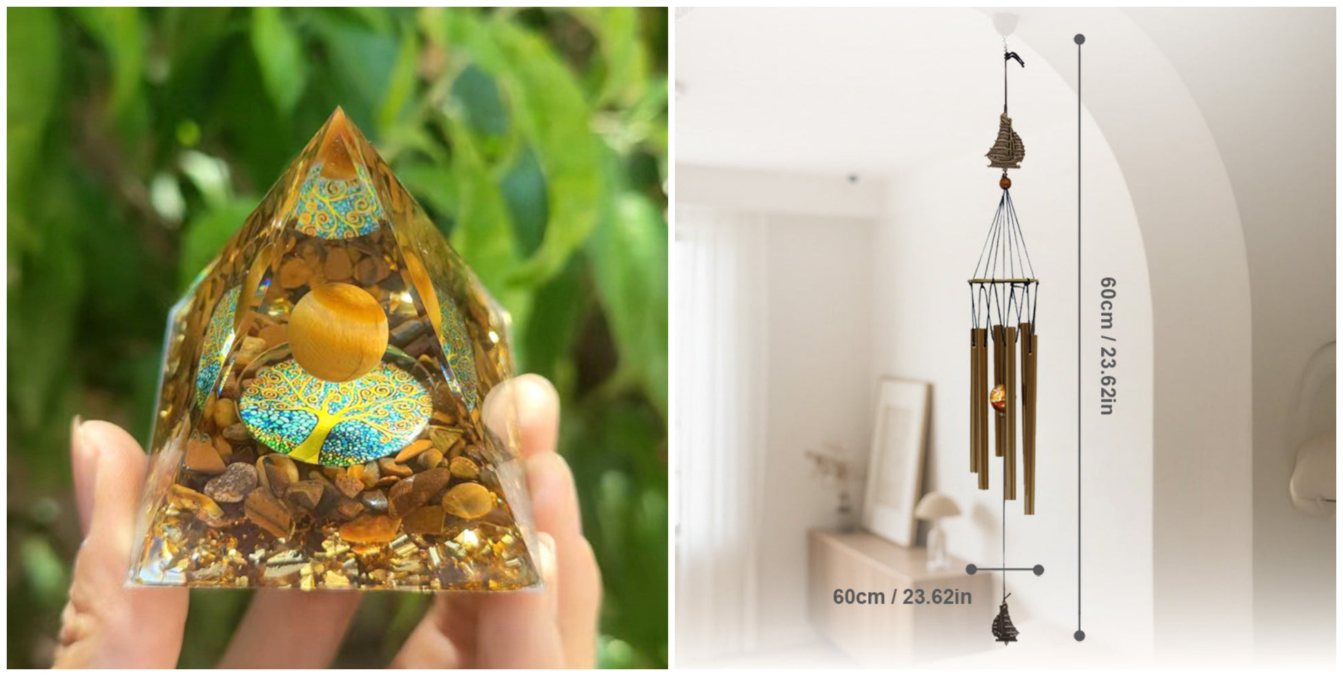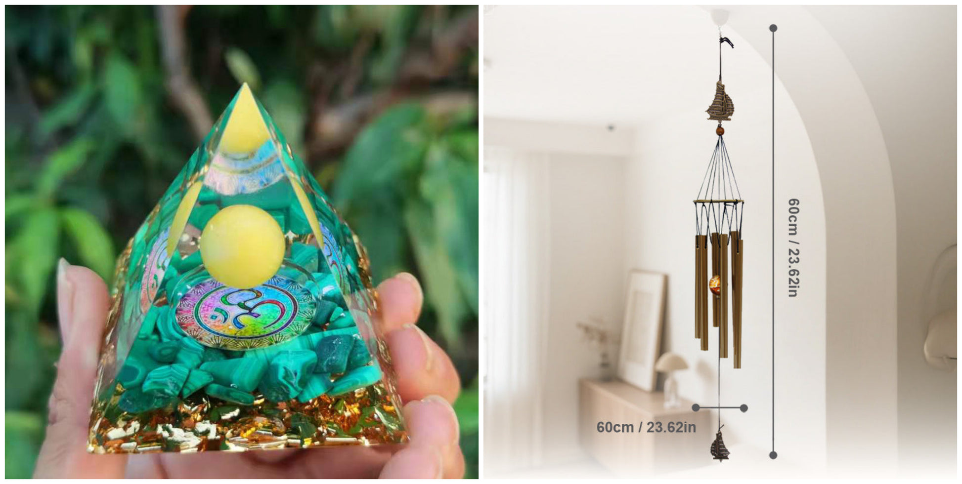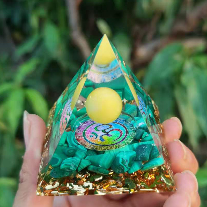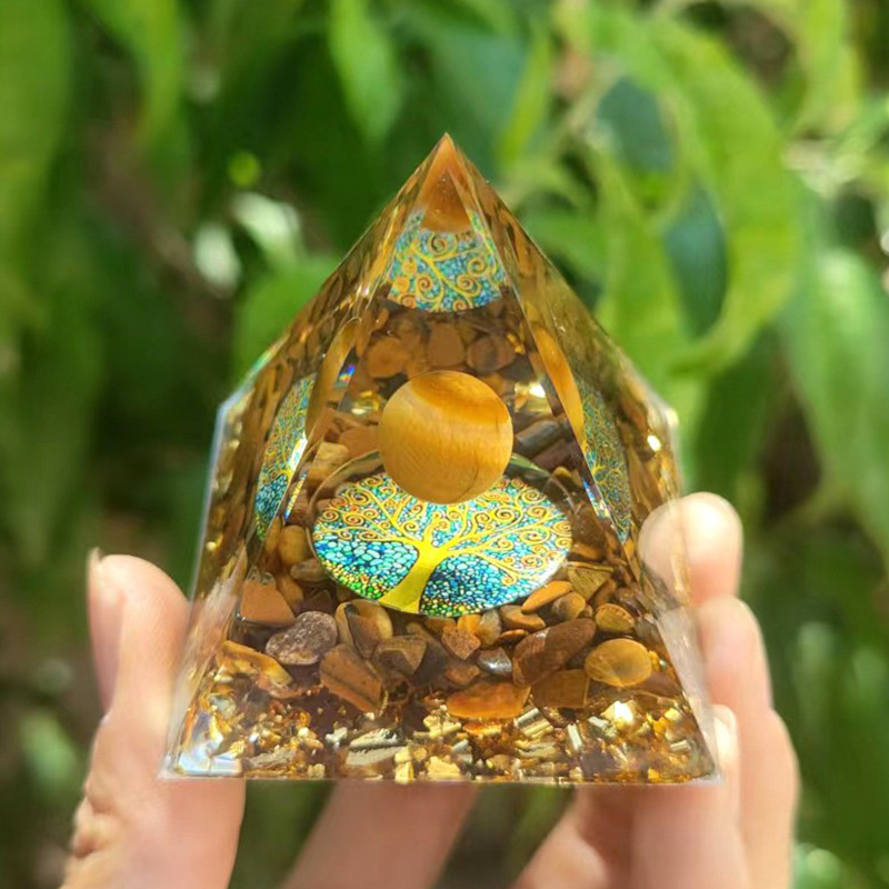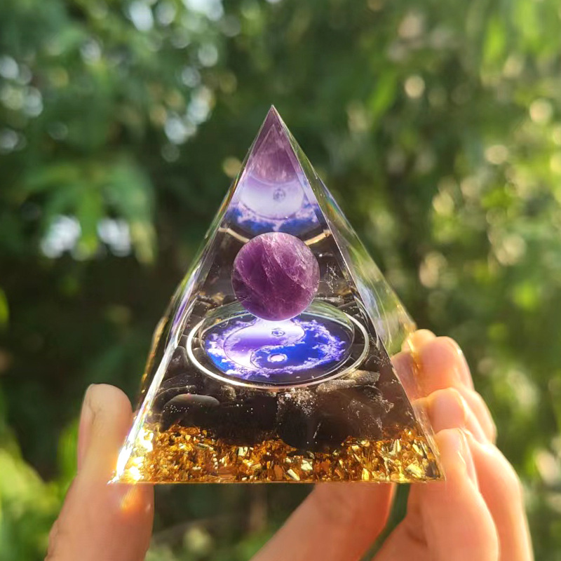 Opakowanie zawiera: 1 × Dekoracja z żywicy w kształcie piramidy z kruszonym kamieniem