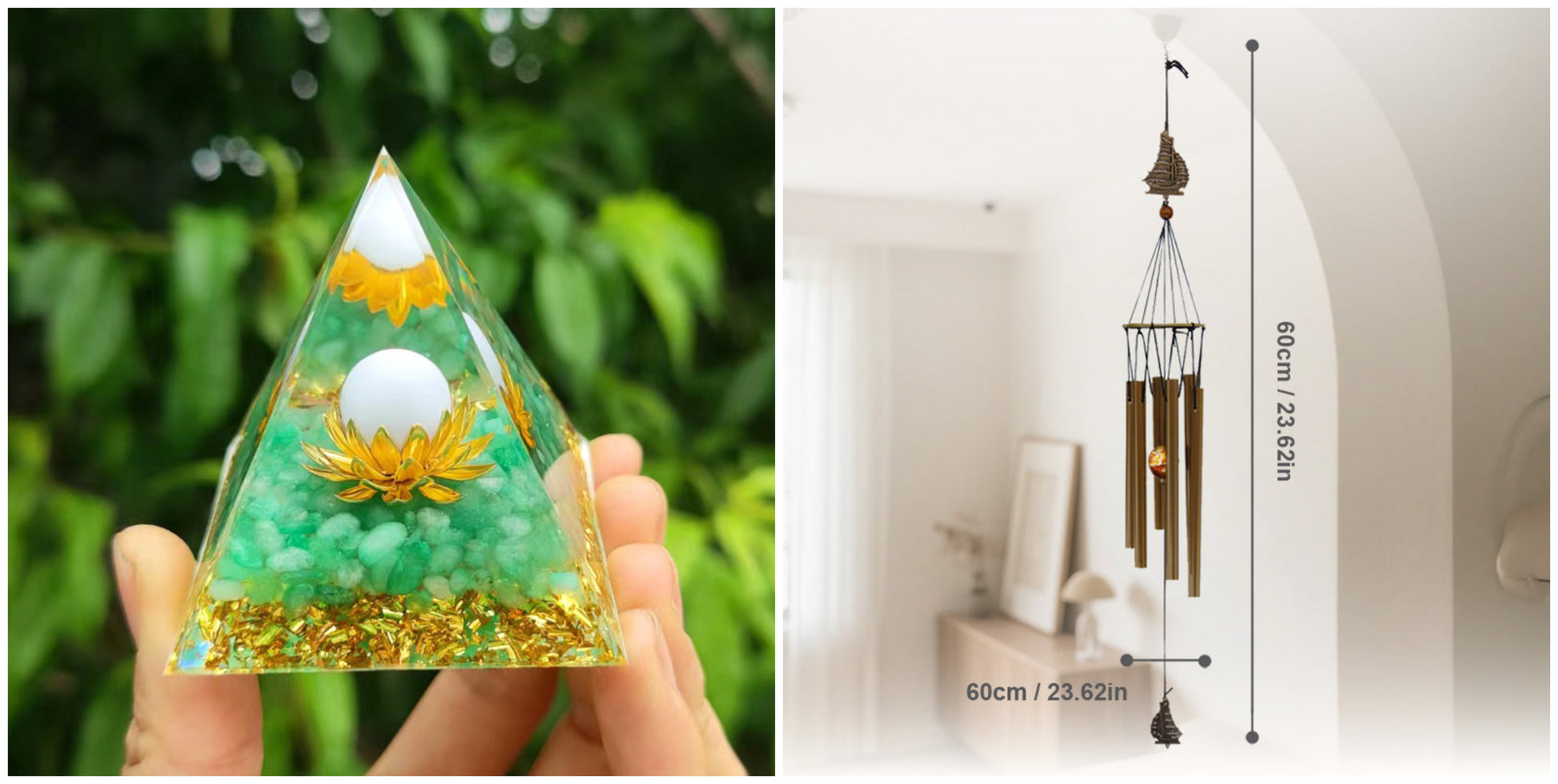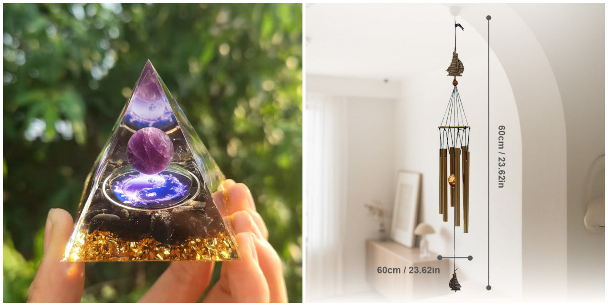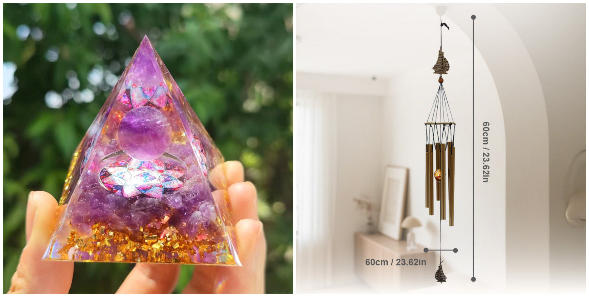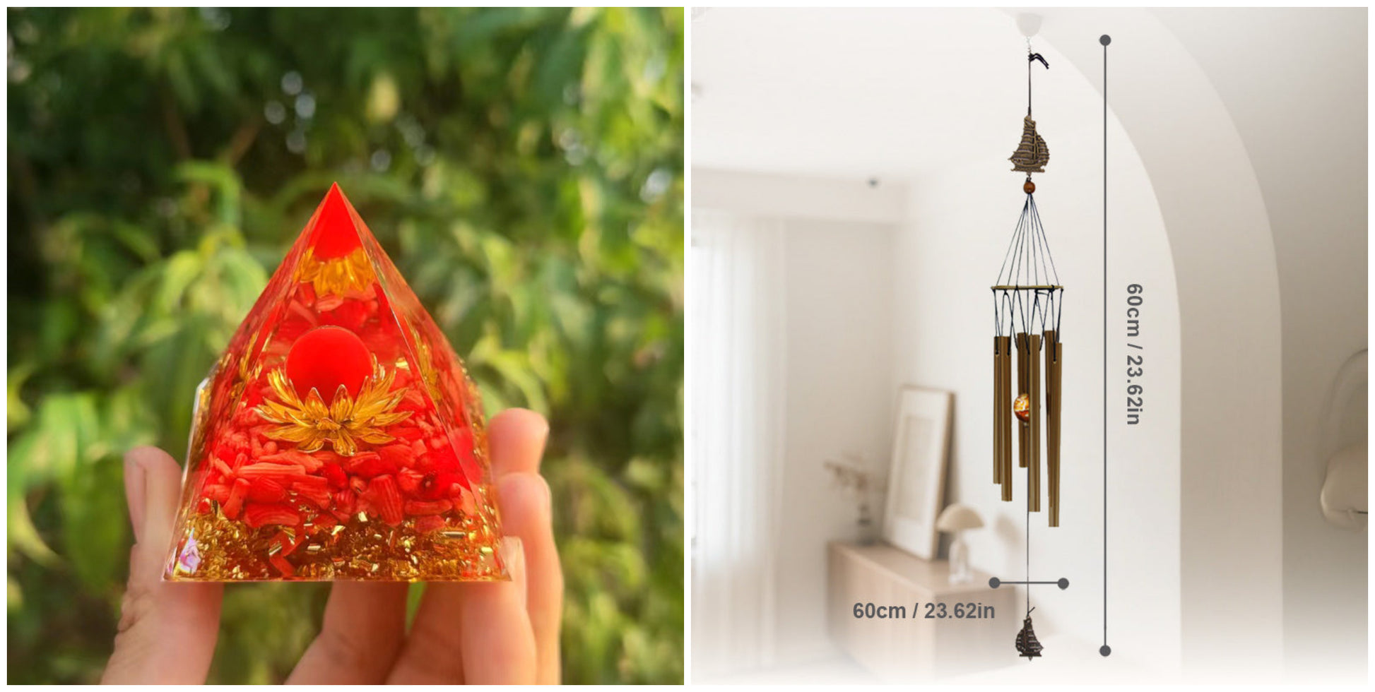 Opakowanie zawiera: 1 × Dekoracja z żywicy w kształcie piramidy z kruszonym kamieniem
